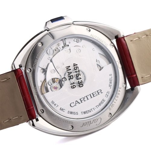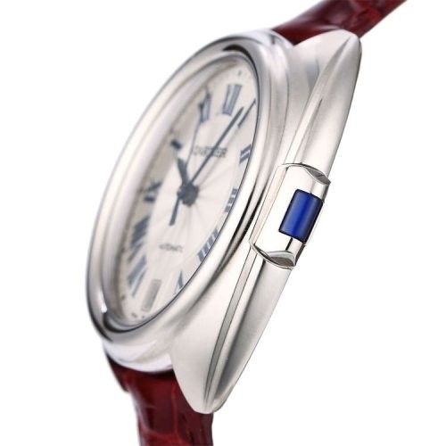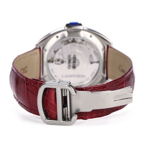 【新品手表】 CARTIER/卡地亚 钥匙系列精钢表壳酒红色鳄鱼皮表带女士自动机械腕表 35毫米