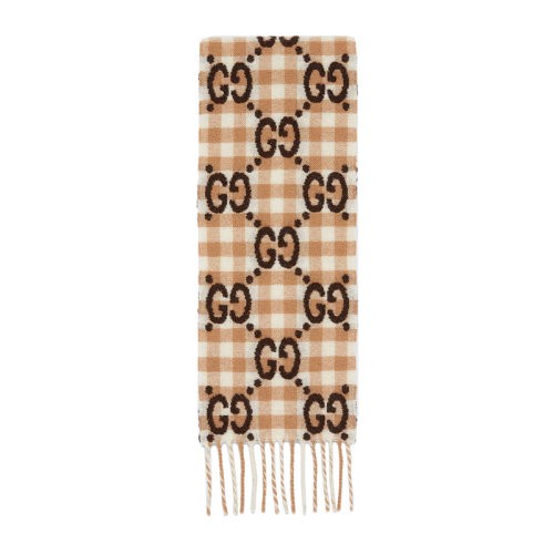 【包税】GUCCI/古驰 22年秋冬新款 儿童款女孩驼色/象牙白色羊毛混纺格纹老花提花围巾6585014KAAL9864(服装)