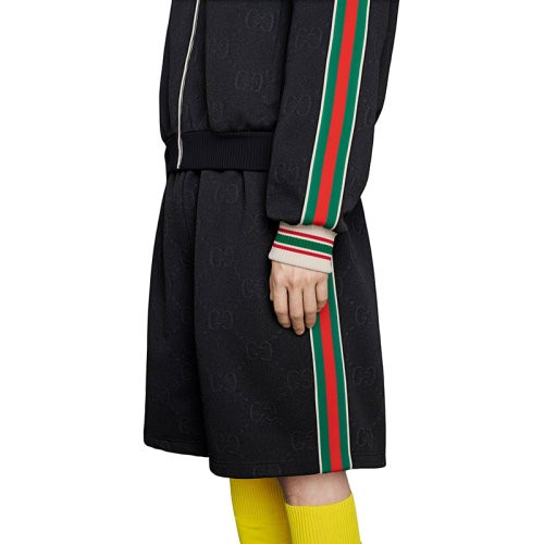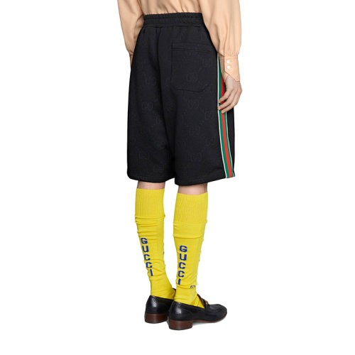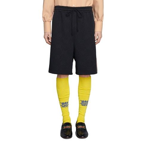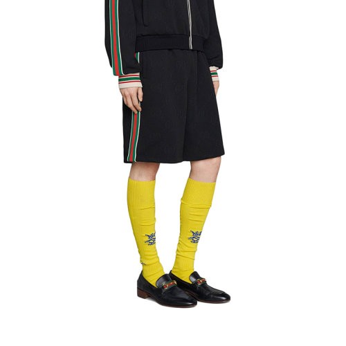 【服装】 GUCCI/古驰 22年秋冬新款 男士黑色聚酯纤维红绿丝带细节百慕大短裤662272XJDE91043
