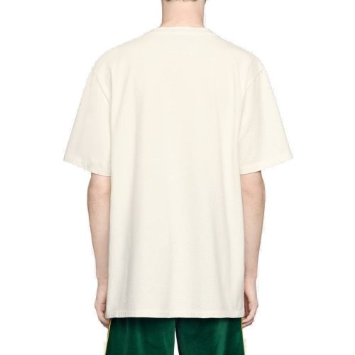 GUCCI/古驰 男士白色纯棉拼色字母锋刃印花短袖T恤 565806 XJAZY 9037