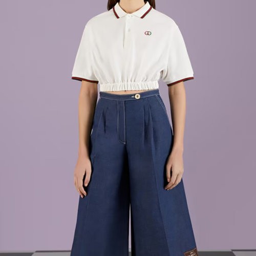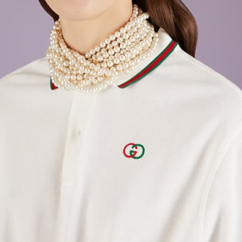 【服装】GUCCI/古驰23新款 女白色松紧腰棉质短袖Polo衫717419XJEV09088