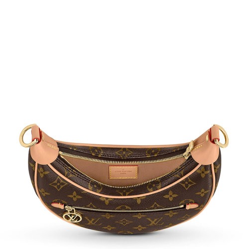 (新品包包)Louis Vuitton/路易威登 22春夏新款LOOP系列 女士经典棕色系老花帆布牛皮革饰边金扣金链单肩手提豌豆月牙包M81098
