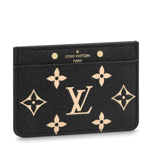 【新品包包】Louis Vuitton/路易威登 22春夏新款女士黑色/米色压纹软粒面牛皮革老花印花卡夹M81022