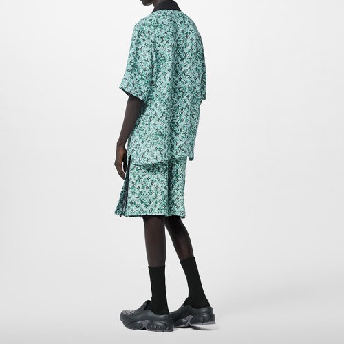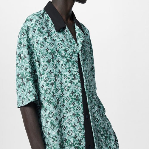 【包税】预订款1个月 LV/路易威登 24新款 男士雾蓝色棉混纺绉纱老花图案衬衫1ABJBD